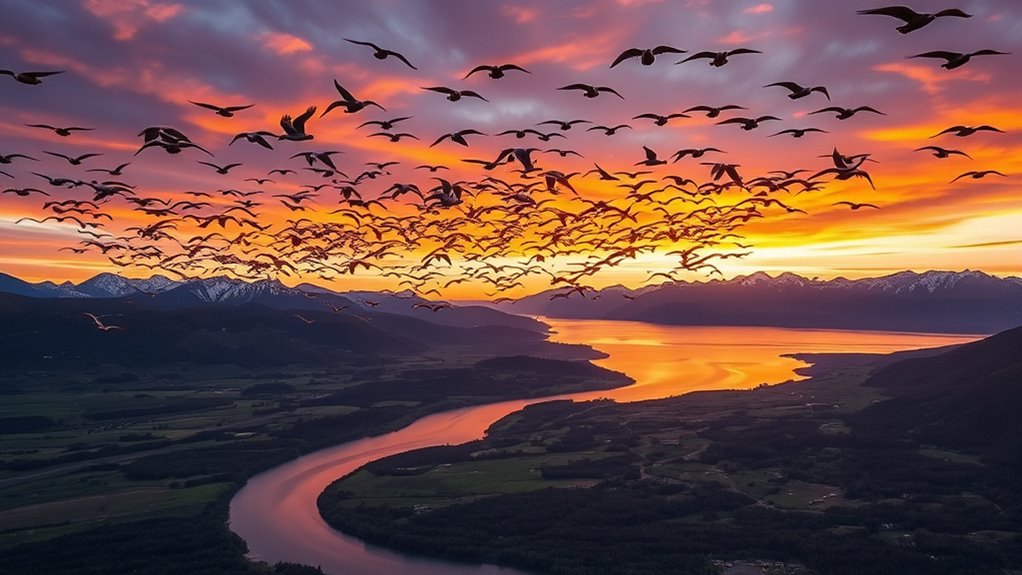 Environmental changes can profoundly affect migration patterns by altering the environmental cues animals rely on. When temperatures shift or food sources become scarce, you might notice changes in migration timing. Animals often adjust their schedules to match the availability of resources or suitable habitats. If spring arrives earlier or there’s a change in weather patterns, you’ll see species adapting their migration routes and timing to survive and thrive in their environments.
