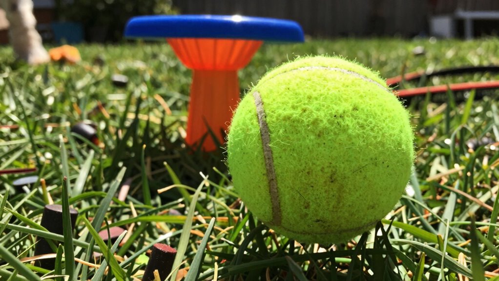 If your dog shows signs of burnout, it’s time to adjust your play strategies to help them recover and regain enthusiasm. Prioritize playground safety by creating a calm environment free of distractions and hazards, ensuring your dog feels secure. Incorporate new training techniques that focus on mental stimulation rather than just physical exertion, such as puzzle toys or obedience exercises. Reduce the frequency of fetch sessions and introduce variety to keep play fresh and engaging. Avoid overusing the ball launcher and give your dog plenty of rest between sessions. By modifying your approach, you prevent further burnout and help your dog develop a healthier, more balanced play routine. Remember, patience and attentiveness are key to maintaining your dog’s love for fetch.