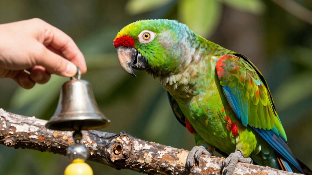 You’ve learned that parrots are more likely to copy sounds they find interesting or rewarding, especially those they hear frequently. Remarkably, studies show that around 50% of pet parrots can learn to mimic human speech, but only if they’re regularly exposed to engaging sounds. So, if you want your parrot to pick up new words or noises, make sure to interact with them consistently and positively. Your efforts could turn your bird into a surprisingly talented chatterbox!