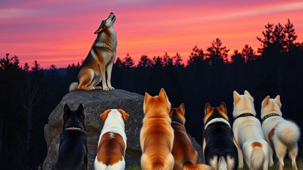 Understanding your dog’s howling can deepen your bond with them. When you recognize this behavior as a form of communication rooted in pack dynamics, you can respond more effectively. Whether it’s comforting your pup during a stressful moment or understanding their need for connection, acknowledging their instincts can enhance your relationship. Additionally, dogs’ vocalizations, including howling, can vary in pitch and tone, which may indicate different emotions or intentions, highlighting the importance of color accuracy in their vocal expressions. So the next time your dog howls, take a moment to appreciate the rich history behind that sound, and know that it’s just another way they’re expressing their connection to you and their world.