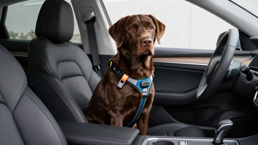 Think of your dog’s safety harness as the sturdy helm guiding your furry companion through the stormy seas of traffic. Choosing the right crash-safe harness and ensuring it fits properly is your vessel’s compass, steering clear of disaster. When you prioritize their safety, you’re not just protecting a pet—you’re anchoring trust and love in every journey. With mindful choices, you navigate the road with confidence, turning every ride into a safe harbor for your beloved dog.