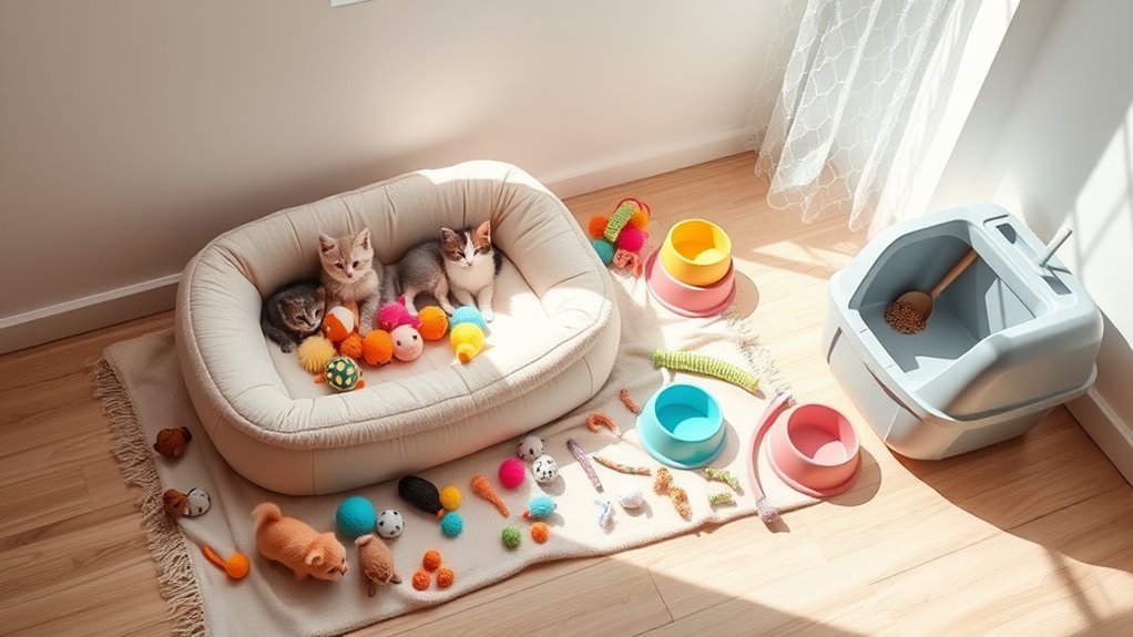 Preparing for a new kitten means gathering essential supplies and creating a safe, stimulating environment. Start with high-quality kitten food, food and water bowls, and a comfy bed. Make sure to set up a secure area with a clean litter box and toys for play. Don’t forget to kitten-proof your home by removing hazards and securing cords. With a little preparation, your new friend will feel right at home, and there’s more to discover as you get ready!