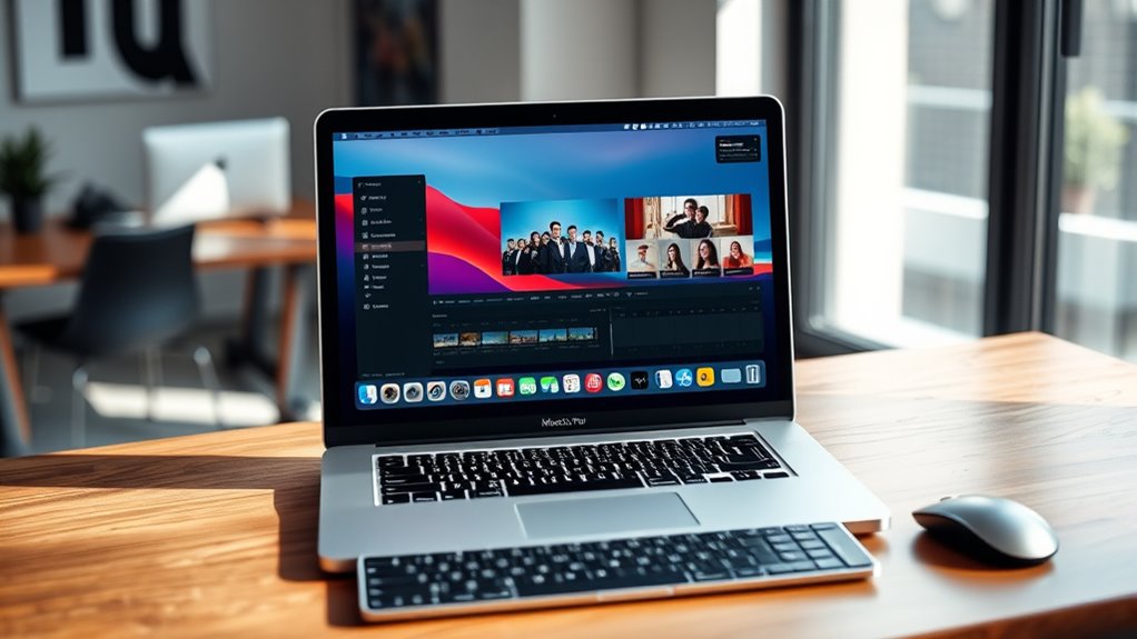 Choosing a 16-inch MacBook Pro involves more than just hardware specs; ecosystem compatibility and features considerably enhance the user experience. Ensuring it works seamlessly with macOS and popular apps like Microsoft 365 and Adobe Creative Cloud means your workflow stays smooth and efficient. Features like iPhone Mirroring, message sharing, and FaceTime control make staying connected effortless. Apple Intelligence offers personalized assistance and privacy protections tailored for the macOS environment. Connectivity options like Thunderbolt 5, HDMI, SDXC card slot, and MagSafe 3 support multiple external devices and displays, boosting productivity. Compatibility with Apple’s Continuity features allows effortless cross-device interactions, such as copy-paste and messaging, which streamline your tasks. These ecosystem features truly maximize the potential of your MacBook Pro.