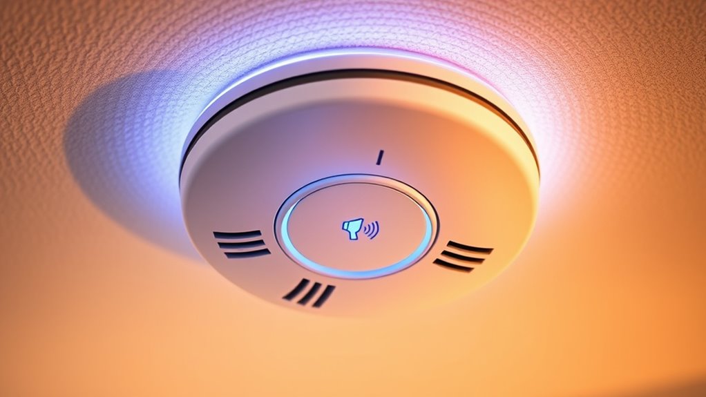 Choosing the right advanced smoke alarm with voice alerts can truly save lives. Did you know that early warning systems increase survival rates by up to 50%? Investing in reliable, feature-rich detectors guarantees your home’s safety and peace of mind. With options like voice alerts, interconnected alarms, and long-lasting batteries, you’re better equipped to respond quickly. Don’t wait—upgrade your safety today and stay protected when it matters most.
