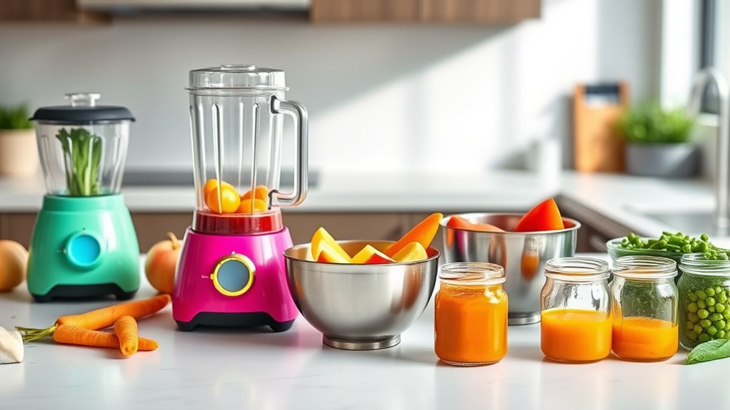 I find that most baby food makers and blenders are pretty quiet, which is great for early mornings or nap times. They’re designed to operate smoothly without loud noises that could disturb your little one. I personally look for models with noise reduction features, so I can blend up nutritious meals without waking or startling my baby. Overall, they’re quite suitable for sensitive times, making mealtime stress-free.