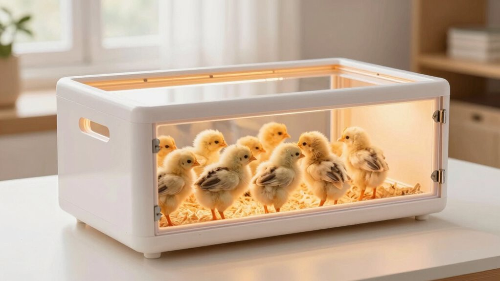 No matter which kit you choose, investing in a reliable brooder box with a heat plate is key to healthy chicks. I know it might seem overwhelming at first, but these options are user-friendly and designed for easy setup. Plus, a good brooder keeps your chicks warm and safe, saving you stress down the line. Trust me, with the right kit, you’ll have happy, thriving chicks in no time!