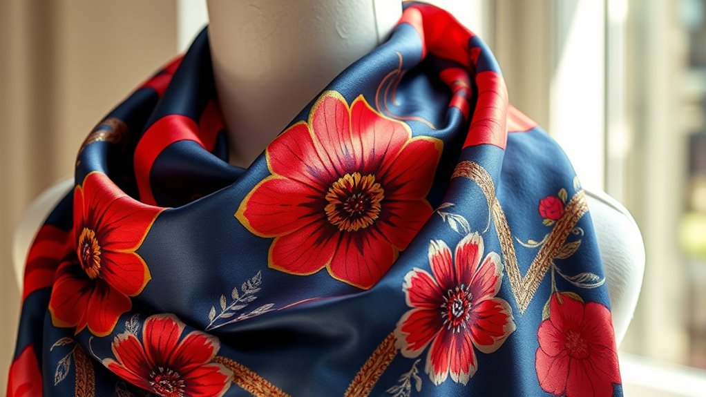 If you have allergy-prone skin, I recommend choosing scarves made from natural fabrics like pure silk, cotton, or bamboo. These materials are gentle and breathable, reducing irritation. Look for hypoallergenic labels and avoid synthetic fibers, which can cause reactions. I personally find silk scarves, especially Mulberry silk, to be the most comfortable because they’re smooth, non-irritating, and help keep my skin calm and happy.