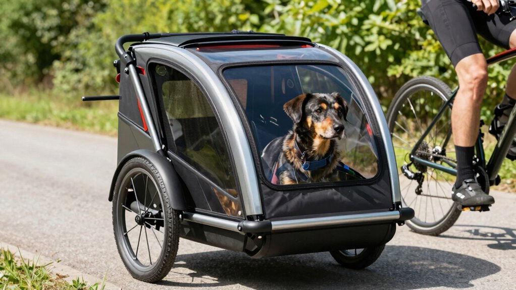 Choosing the right trailer feels like finding a cozy nook on a bustling trail, where your dog can enjoy the breeze and new sights comfortably. Imagine the gentle sway as you pedal, your furry friend nestled safely inside, eyes bright with adventure. With the perfect trailer, every ride becomes a shared journey of discovery and joy. So, pick one that feels just right—you’ll both be exploring new horizons together, tail wagging in harmony.