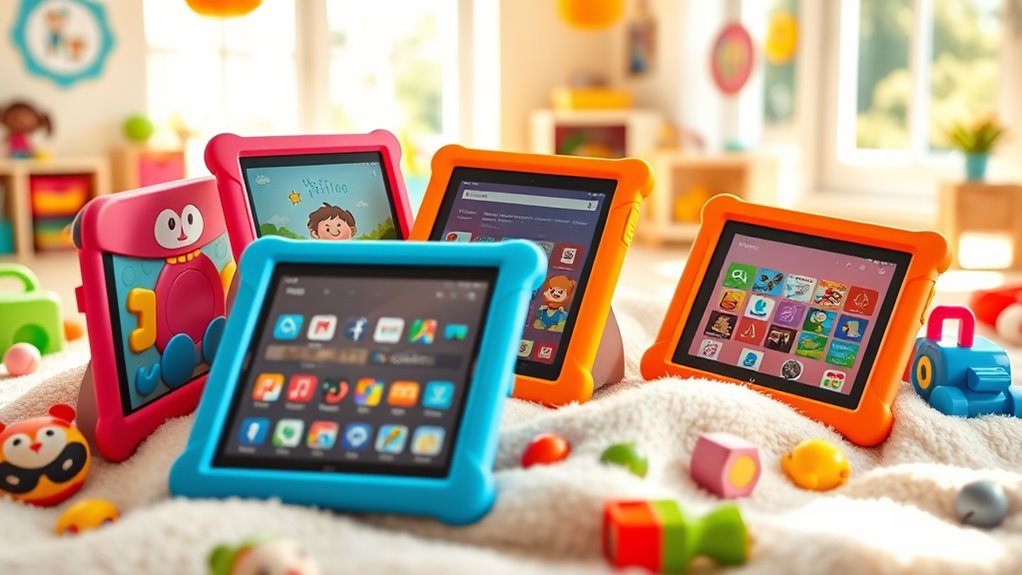 Choosing the right Fire HD tablet for kids depends on durability, safety, and fun features. Did you know that over 70% of parents prioritize durability when selecting tech for their kids? With options like shockproof cases and age-appropriate models, you can find a device that’s both secure and engaging. Investing in a quality tablet guarantees your child stays entertained and protected, making screen time a positive experience for everyone.