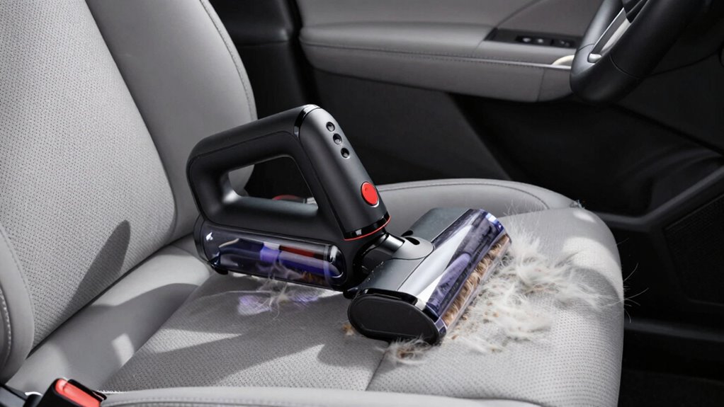 When selecting a handheld vacuum for pet hair in cars, paying attention to specialized pet tools can make a significant difference in cleaning effectiveness. Look for models equipped with motorized brushes or rollers designed to lift stubborn pet hair from upholstery and carpets. These tools are essential for dislodging hair stuck deep in fibers. Additionally, specialized attachments like pet hair nozzles or turbo brushes help reach tight spaces and deep into car seats. Enhanced suction power, ideally over 15,000 Pa, ensures thorough removal of embedded hair and dander. Hypoallergenic filters, such as HEPA filters, trap allergens and improve air quality during cleaning. Static or rubberized brushes are also valuable, helping to dislodge hair without scattering it, making your cleaning more efficient.