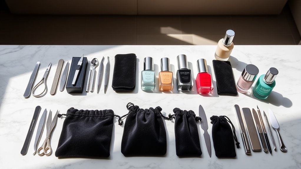 How do you determine if a luxury nail care kit is worth the investment? First, consider the number of tools included and whether they suit your grooming needs. High-end kits typically cost between $50 and $150, reflecting quality materials like surgical-grade stainless steel, which offers durability and rust resistance. Look beyond price—evaluate the quality of the carrying case and organizational features, as these can extend the kit’s lifespan and usability. Comparing similar kits on the market helps ensure you’re getting true value for your money, especially when premium features and craftsmanship are involved. Ultimately, a higher price can be justified if the kit contains essential tools made of superior materials and offers lasting durability, making it a worthwhile addition to your manicure routine.
