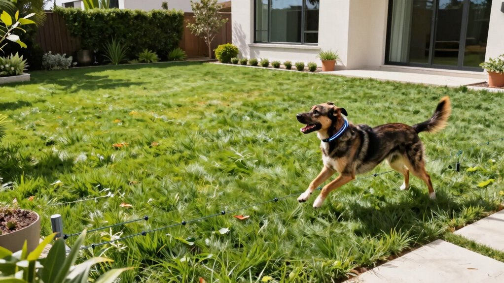 Imagine a quiet yard, your dog happily exploring within a safe boundary—that’s what I see with invisible fences. Yes, there are safety concerns, especially if the system isn’t used correctly or if your dog isn’t properly trained. Sometimes, dogs might get scared or try to escape. I recommend following all instructions carefully and consulting a professional to guarantee your pet’s safety while enjoying the peace of an invisible fence.