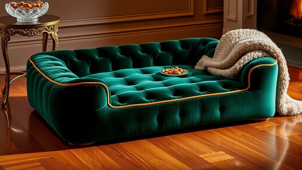 In wrapping up, choosing the perfect luxury dog bed is about blending beauty with comfort. By considering size, support, and style, you guarantee your pup feels pampered and plush. Remember, a well-chosen bed not only provides peace and posture but also promotes pure pet happiness. Prioritize quality, and your furry friend will be forever thankful for a fabulous, fluffy, and functional spot to snooze and snuggle. After all, a happy hound starts with a heavenly hideaway!