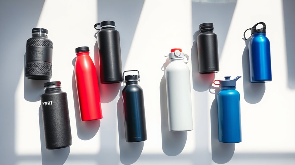 When comparing Owala and Yeti water bottles, I find that Owala offers versatile, affordable options perfect for everyday use, with features like wide openings and multiple drinking styles. Yeti bottles focus on durability and insulation, making them ideal for outdoor adventures and extended cold or hot drinks. Neither brand is clearly better—they serve different needs. Keep exploring, and you’ll discover which one suits your lifestyle best and how they truly stack up.