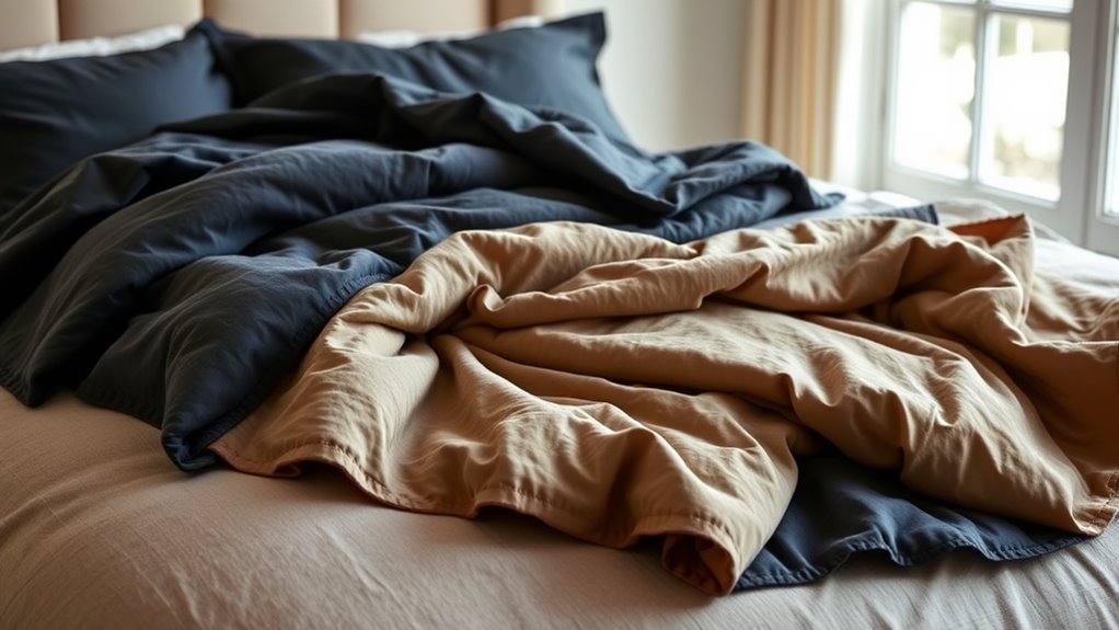 When it comes to a good night’s sleep, breathability is essential, especially with weighted blankets that can trap heat. Breathable materials like cotton, microfiber, or mesh allow air to circulate, reducing heat buildup and preventing overheating. Natural fabrics such as OEKO-Tex certified cotton or organic linen boost breathability and skin comfort, which is especially important for sensitive skin. Lightweight, moisture-wicking fabrics help regulate temperature, keeping you cool in summer and warm in winter. Tightly woven fabrics or mesh panels enhance airflow within the blanket, promoting a more comfortable sleep environment. Proper breathability minimizes sweating and discomfort, contributing to longer, more restful sleep. Choosing a blanket with these features makes a significant difference in overall comfort and sleep quality.