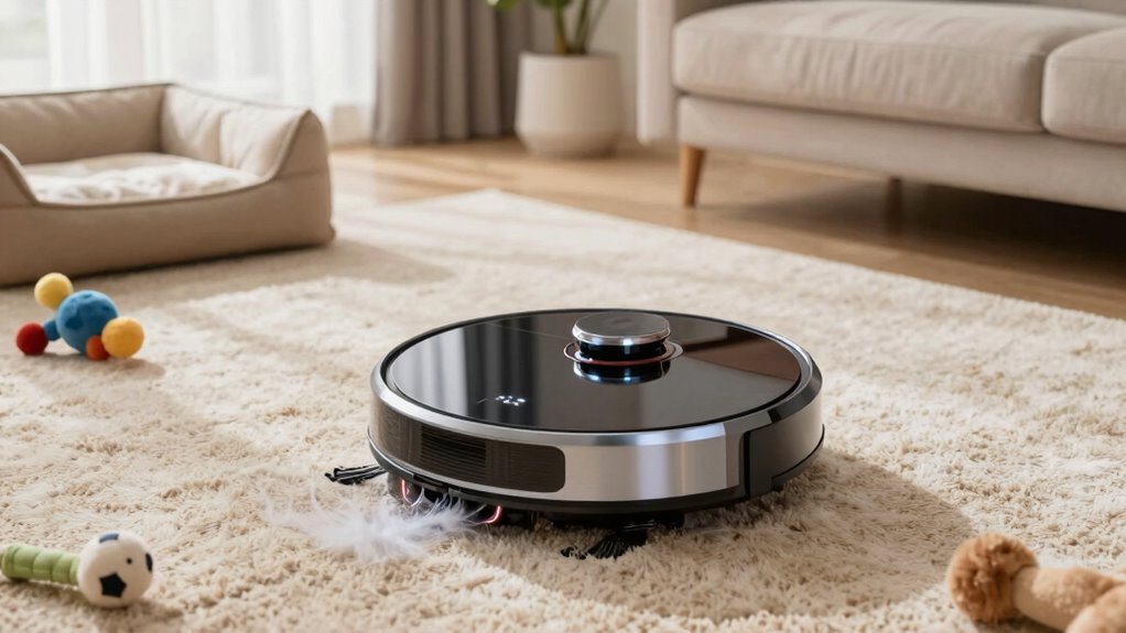 Robot vacuums handle pet hair differently depending on the floor type. On hardwood or tile, I find they work well because hair doesn’t get tangled as easily. On carpets, some models with strong suction and brush rolls pick up pet hair effectively, but thicker carpets may still be a challenge. I recommend choosing a robot with adjustable suction and specialized brushes for ideal pet hair removal across various surfaces.