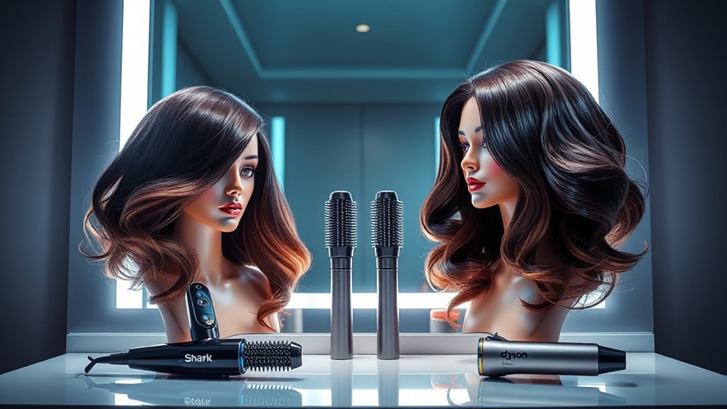 So, after digging into these top contenders, I can’t help but wonder—will the Shark FlexStyle’s versatility outshine the Dyson Airwrap’s precision? Each offers something unique, but the real question is which one truly fits your styling style—and the surprises that await when you decide. Trust me, choosing the best isn’t just about features; it’s about uncovering that secret edge only you can discover. Are you ready to make the ultimate choice?