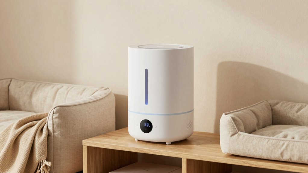 Choosing the right smart humidifier with a humidity sensor is like finding a loyal companion for your pet’s comfort. It guarantees your furry friends breathe easy, no matter the weather outside. By considering size, features, and your room’s needs, you’re planting seeds for a healthier, happier environment. Remember, the perfect humidifier isn’t just a gadget — it’s the gentle breeze that nurtures your pet’s well-being every day.