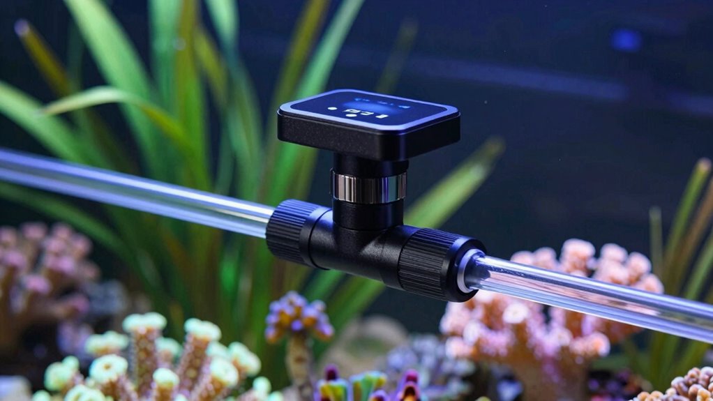 Smart water shutoff valves easily integrate with existing aquarium systems by connecting directly to your water supply line. I simply install them at the main water inlet, then sync them with a smartphone app or home automation system. Once set up, they monitor for leaks or unusual flow, automatically shutting off water when needed. This seamless integration helps protect my aquarium from potential water damage without requiring complex modifications.