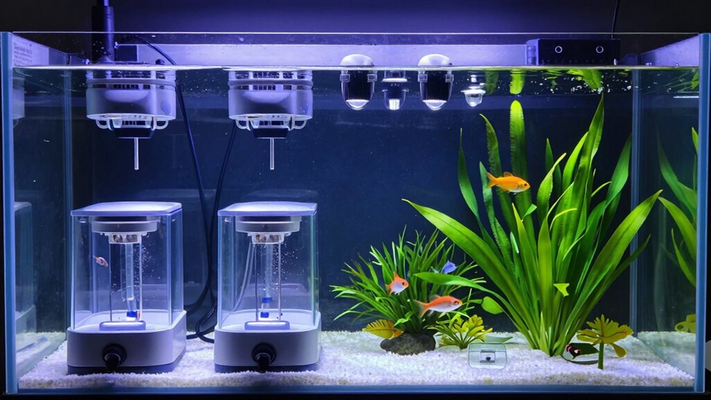 UV sterilizers do add some additional aquarium maintenance, but I find they’re worth the effort. They help keep algae at bay, bacteria balanced, and water clearer, reducing overall cleanup. However, I do need to regularly check the sterilizer’s bulb and flow rate, and clean the unit to make sure it works efficiently. So, while they require some extra attention, the benefits of a healthier, happier aquarium outweigh the added work.