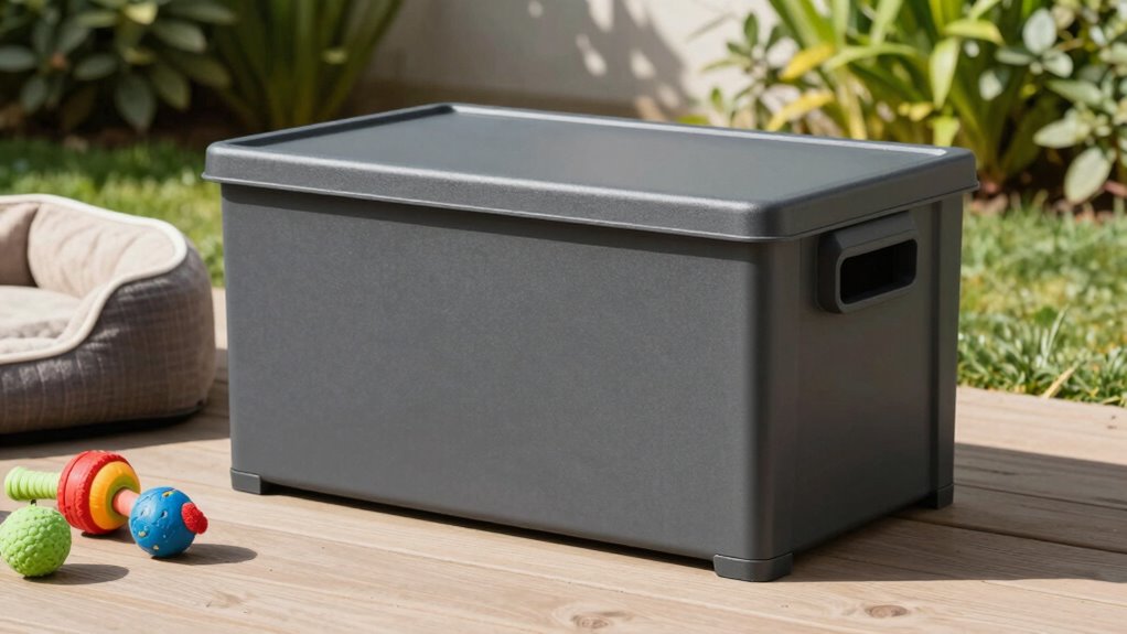 Imagine your pet’s gear safe and dry, tucked neatly inside a weatherproof deck box that stands like a fortress against the elements. With the right storage, you’ll enjoy peace of mind knowing your furry friend’s essentials are protected no matter the storm. So, pick the perfect box that fits your needs—because a little foresight today keeps the wet, muddy messes away tomorrow. Your pet’s comfort and your peace of mind are worth it.