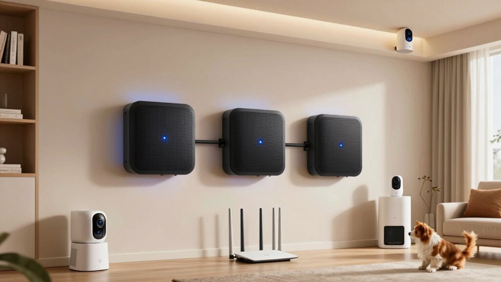 Back in the day, I’d never thought Wi-Fi could be so smart! Now, mesh systems can prioritize pet cameras’ bandwidth over other devices. I’ve set up Quality of Service (QoS) features that give my cameras the boost they need, ensuring smooth streams even when my family’s streaming or gaming. It’s like having a personal Wi-Fi butler, making sure my pets stay watched without sacrificing overall internet performance.