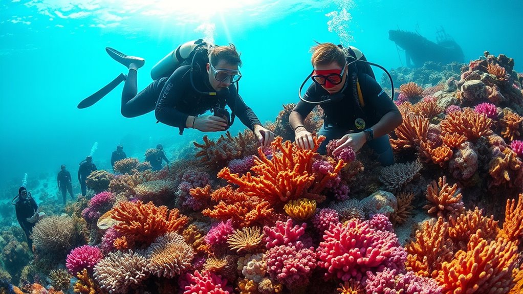 Local communities play a vital role in coral reef restoration efforts by actively engaging in conservation activities. You can participate in community engagement initiatives that promote sustainable practices, like monitoring reef health or organizing clean-up events. By fostering a sense of ownership and responsibility, you help guarantee that local ecosystems thrive. Your involvement not only strengthens community bonds but also enhances the effectiveness of restoration projects, making a lasting impact on coral reefs.